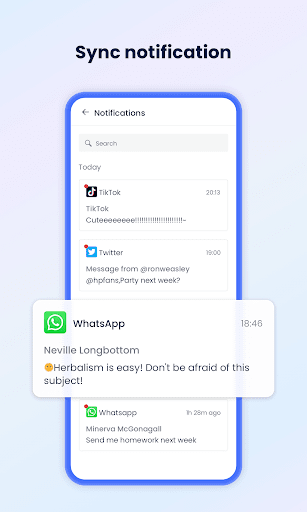 ◆ Đồng bộ hóa thông báo ứng dụng - Chức năng đồng bộ hóa thời gian thực giúp bạn biết thêm về cuộc trò chuyện của con mình trên mạng xã hội như Facebook, Instagram, Messenger, v.v. Giúp con bạn tránh xa nạn bắt nạt trên mạng và gian lận trực tuyến.